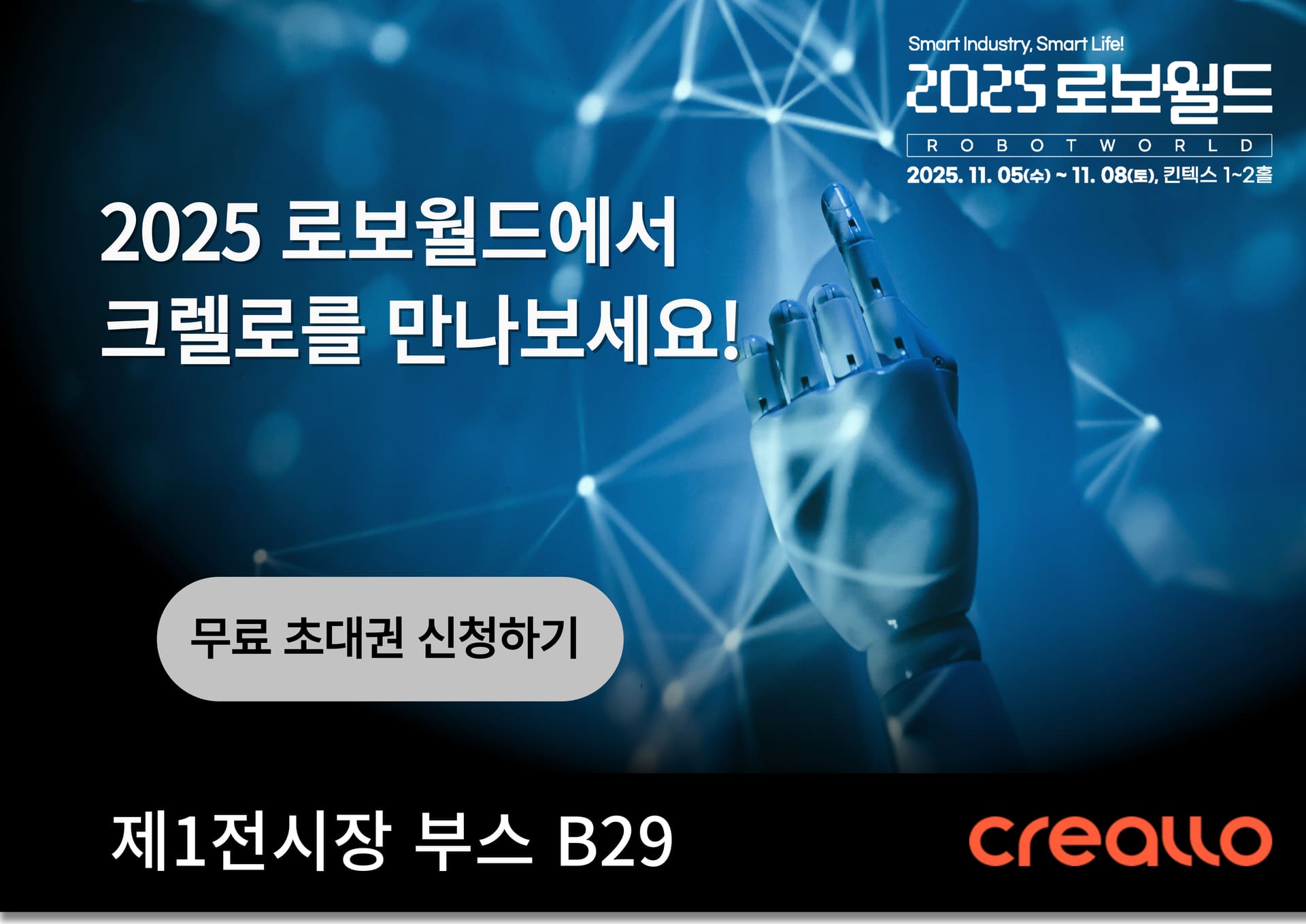 크렐로가 국내 최대 규모의 로봇 전문 전시회 2025 로보월드 (2025 Robot World)에 참가합니다.